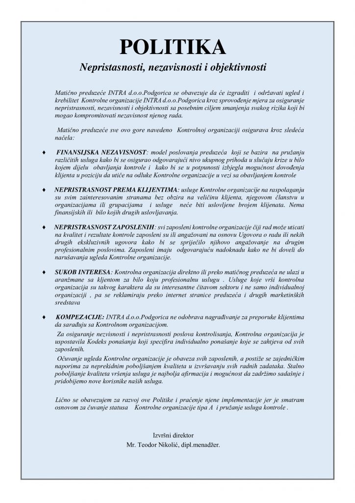 Intra je naučno istraživačka institucija sa licencom za rad, izdatom od strane Ministarstva nauke Crne Gore.